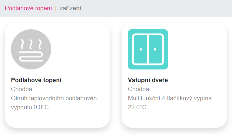 Následně se vám v levém menu zobrazí volba Zařízení a zároveň dlaždice jednotlivých zařízení: