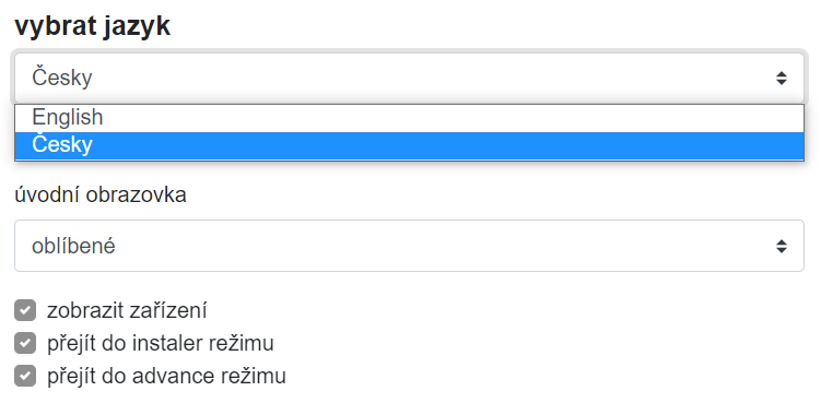 Nastavení jazyka ovládací aplikace