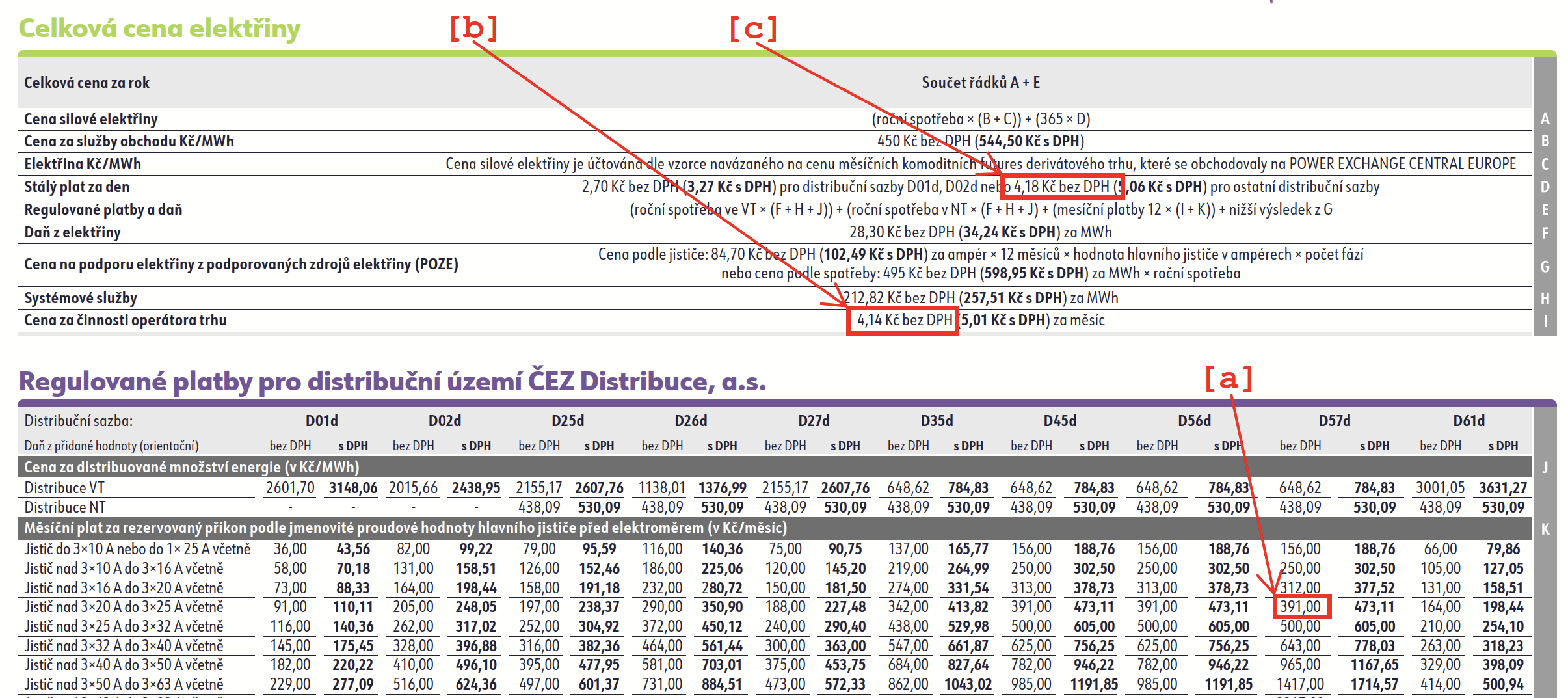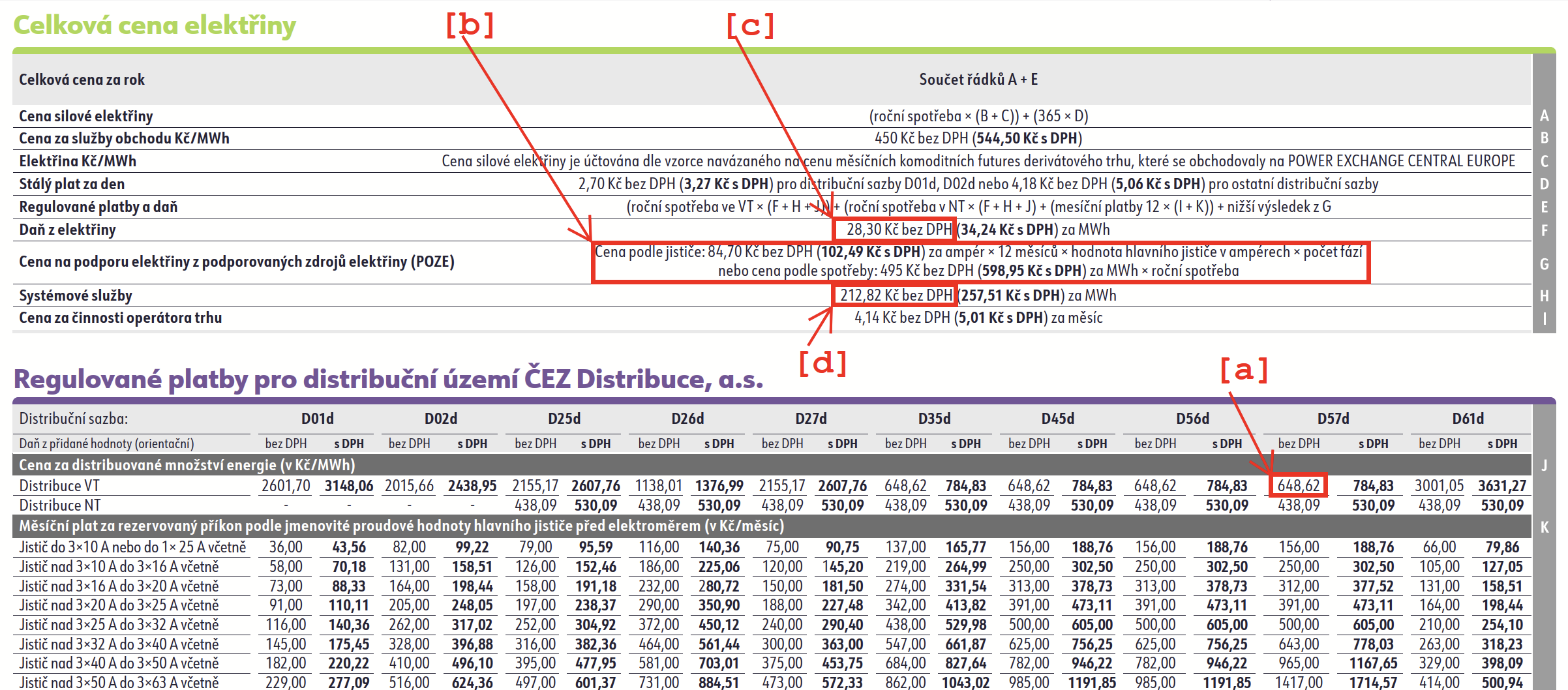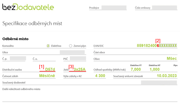 - ze smlouvy je potřeba zjistit distribuční sazbu (př. [1] D57d)