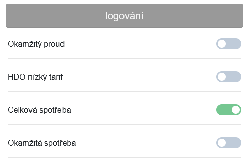 Požadovaná hodnota musí být logovaná. Aktivaci provedete v položce LOGOVÁNÍ u příslušné služby. V případě uvedených zařízení lze tuto hodnotu logovat přímo.