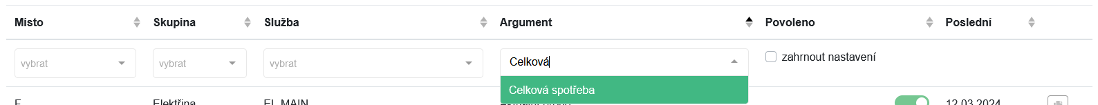 Pro přehlednost je vhodné filtrovat pouze požadovaný argument „Celková spotřeba“