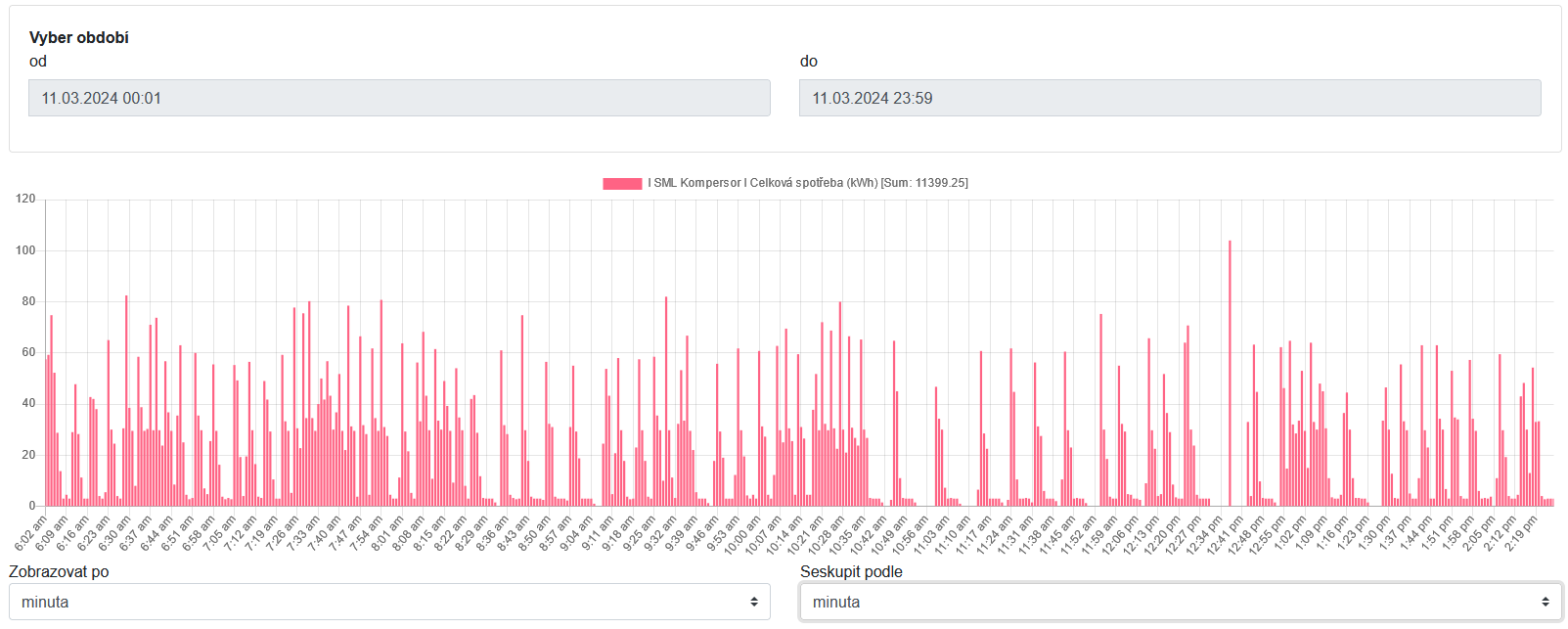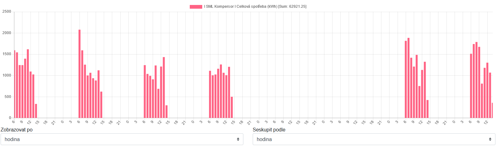 Zobrazení grafu je defaultně nastaveno na celkovou spotřebu po dnech