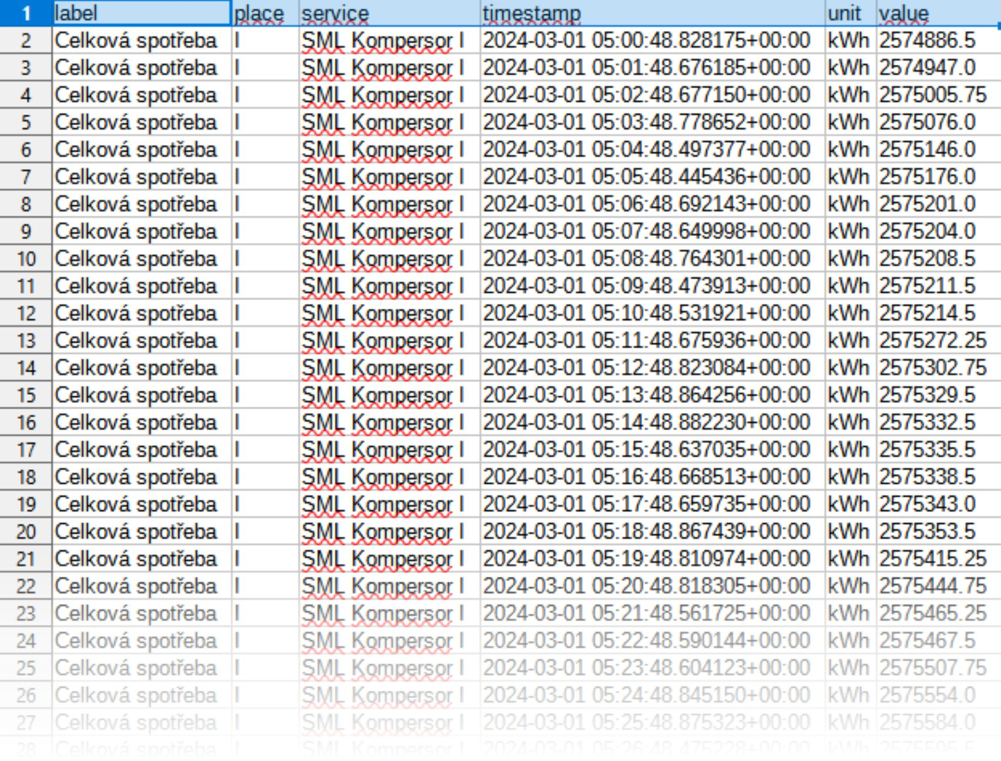 Pro potřebu vlastního zpracování grafů nebo analýzy lze data uložit do souboru CSV. V bodě po výběr sledovaného zařízení zvolte export do CSV.