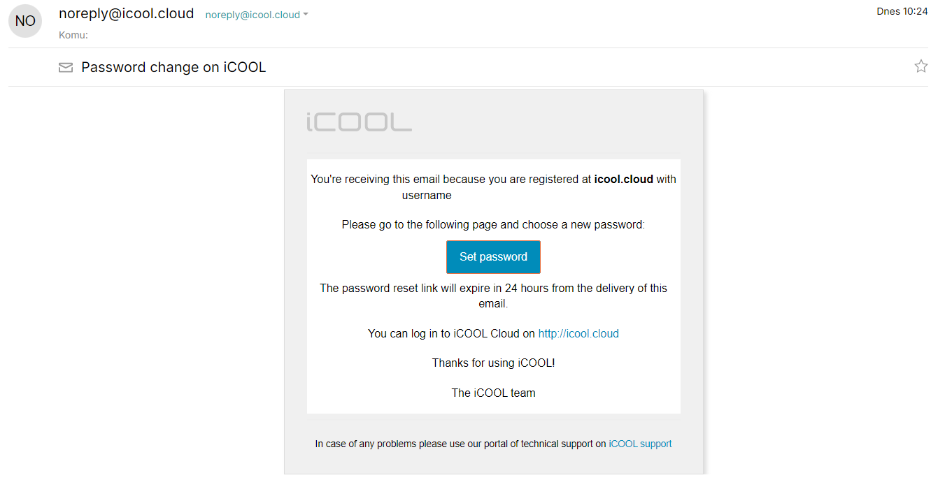 After clicking on "Set password" you will be redirected to the iCOOL web application and asked to enter your password.