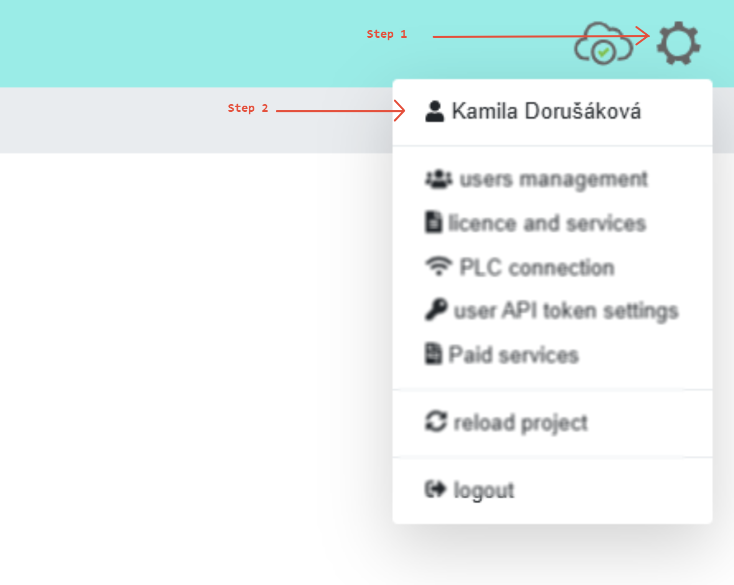 In the upper right corner you can see the partner EnergoStation s.r.o. and the name of the account or your name. When you pull down the account name box, you will see an option to log out of your account.