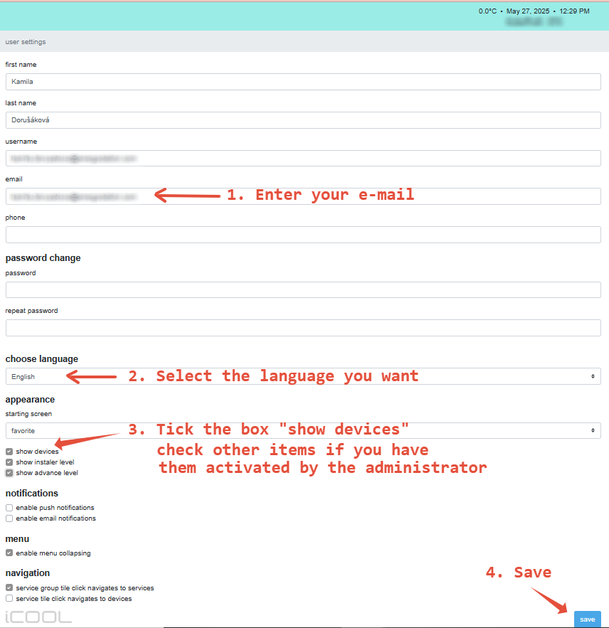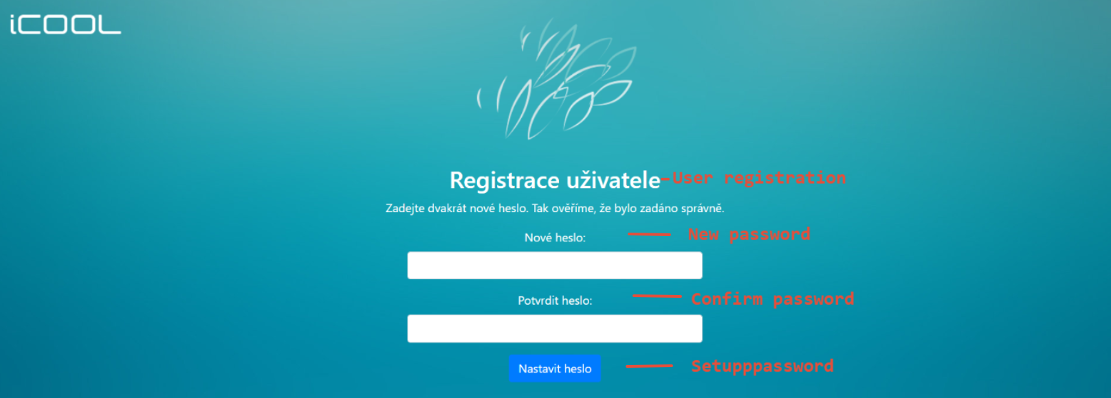 Here you will set the password you want to use to log in to iCOOL and confirm with the blue "Set password" button.