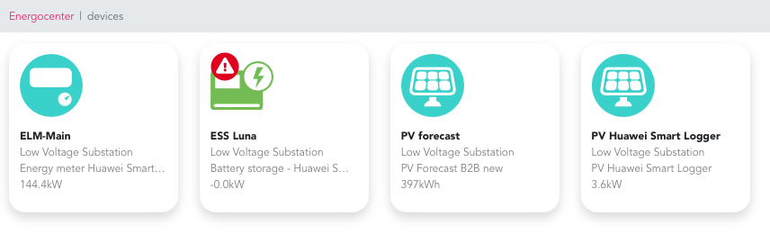 First, after clicking on matrix icon at the top right corner, application will open menu with accessible devices from Energocenter.