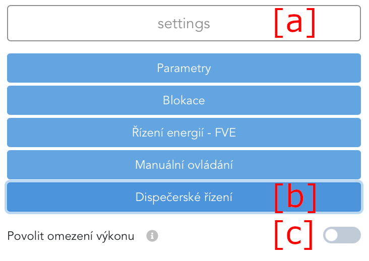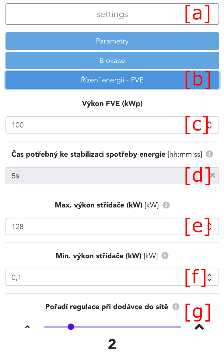 Under settings [a], it is possible to configure energy management of power plant [b].
