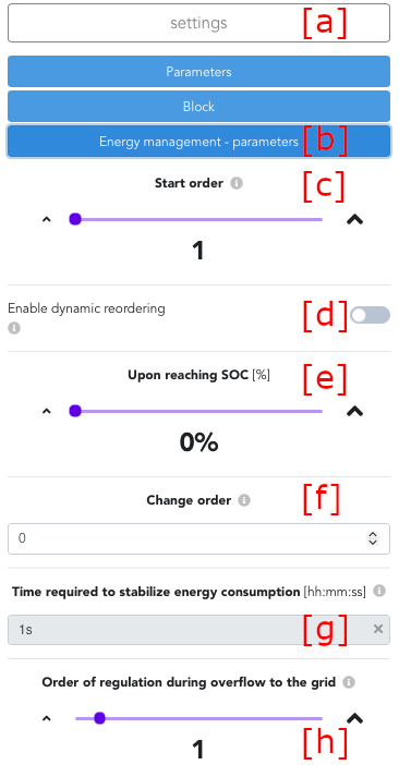 Under settings [a], it is possible to configure Energy management parameters [b].